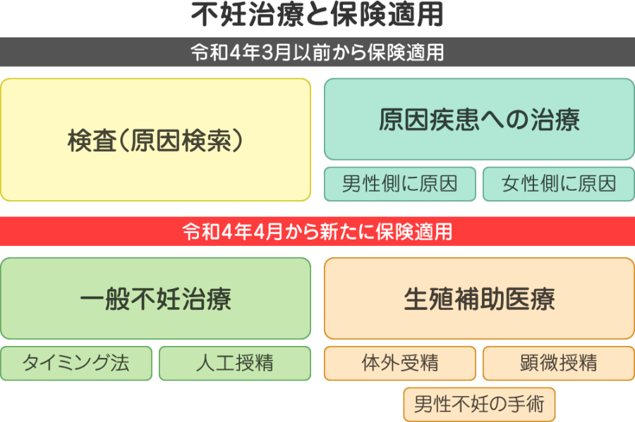 以前から、不妊の原因を探るための検査費用や不妊の原因となっている疾患の治療費用については、保険が適用されていましたが、不妊治療そのものは保険適用の対象外でした。