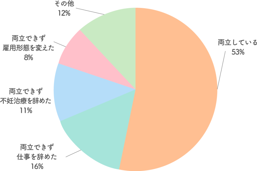 厚生労働省が行った「平成29年度 不妊治療と仕事の両立に係る諸問題についての総合調査」では、不妊治療をしたことがある(または予定している)人の中で、「仕事と両立している(または両立を考えている)」とした人の割合は53%と、半数以上に上ります。