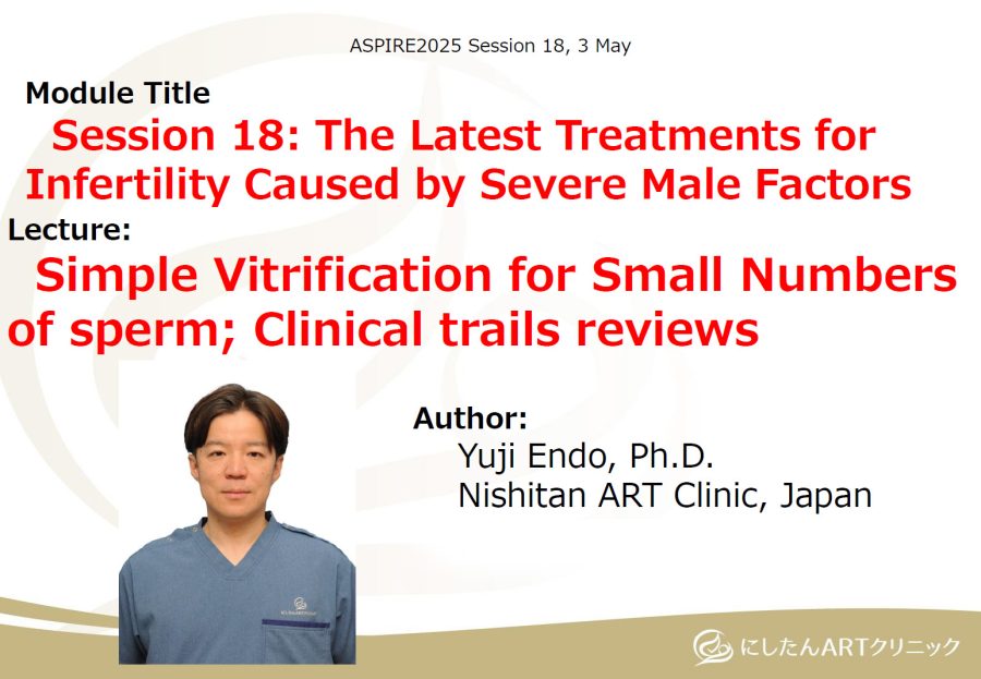 「【Session 18】Single sperm vitrification for small number of spermatozoa; clinical trials reviews.」というタイトルの講演を行いました。