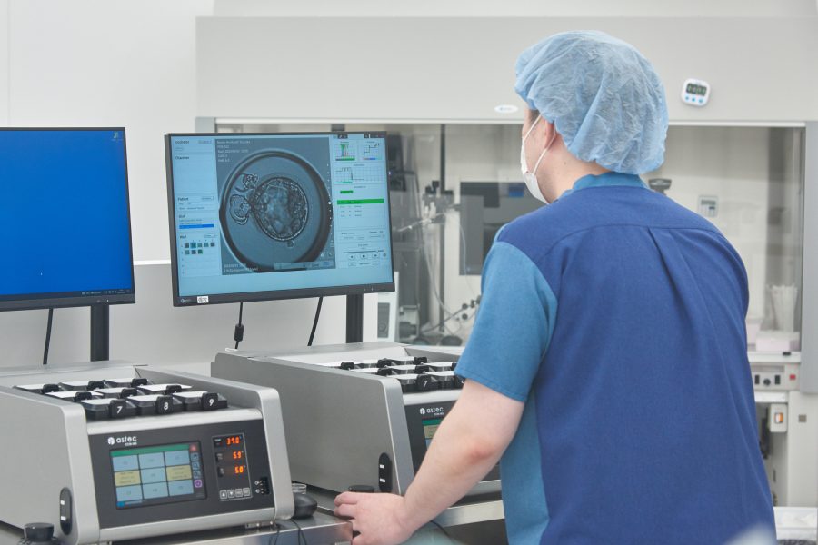 受精した卵子を、母体に近い理想的な環境下で培養します。培養の過程をタイムラプス型培養器で観察しながらしっかりと成長を確認していきます。