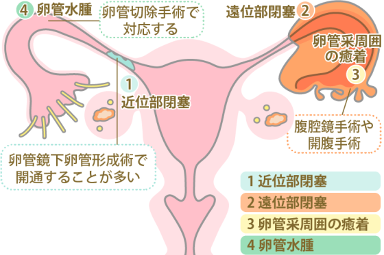 虫垂炎など、過去に受けた骨盤内の手術によって卵管周囲が癒着することもあります。