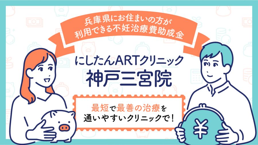 にしたんARTクリニック神戸三宮院は、兵庫県の不妊治療助成金の対象機関です。にしたんARTクリニック神戸三宮院で生殖補助医療と先進医療を併用された場合、先進医療費および通院交通費の助成を受けることができます。