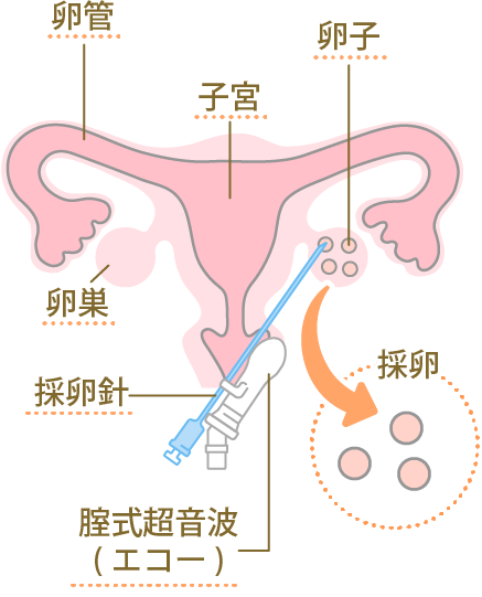 採卵とは、卵巣から卵子を取り出す手術のことです。1回の採卵でできるだけ多くの卵子を得るために、経口薬や注射で排卵誘発剤を用いて卵巣を刺激し、卵子の成長を促す「卵巣刺激法」が用いられます。