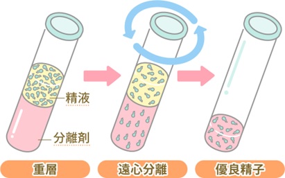 精液検査で精子の量や運動率を確認したら遠心分離し、精子調整を行います。この操作を行うことで、優良な精子だけを濃縮することができます。精子調整には1時間から1時間半程かかります。
