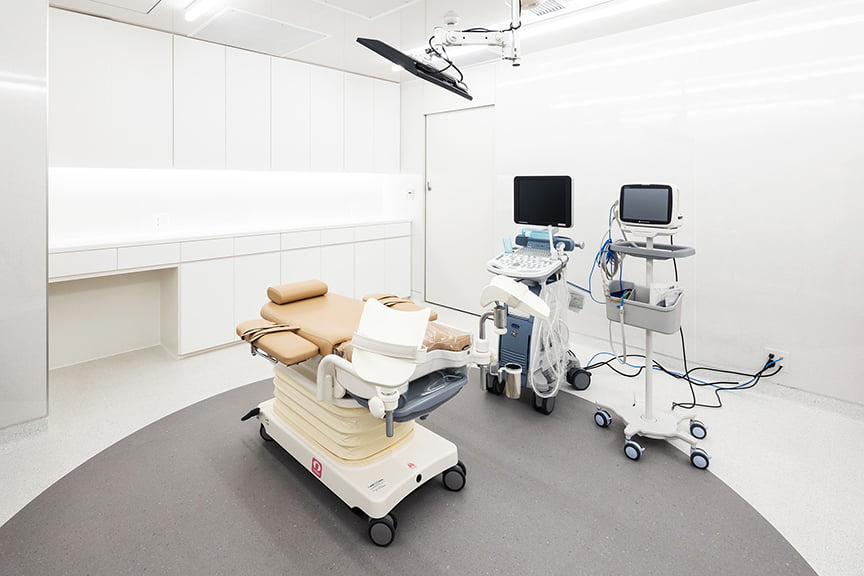 採卵は採卵室で行い、10分程度で終了します。採卵できた卵子を確認し、妊娠可能な卵子を選別して液体窒素で凍結。液体窒素タンクで保存します。採卵後、患者さまはリカバリールームで2~3時間安静にしていただき、医師の診察をお受けいただき、胚培養士より採卵結果の説明を行います。