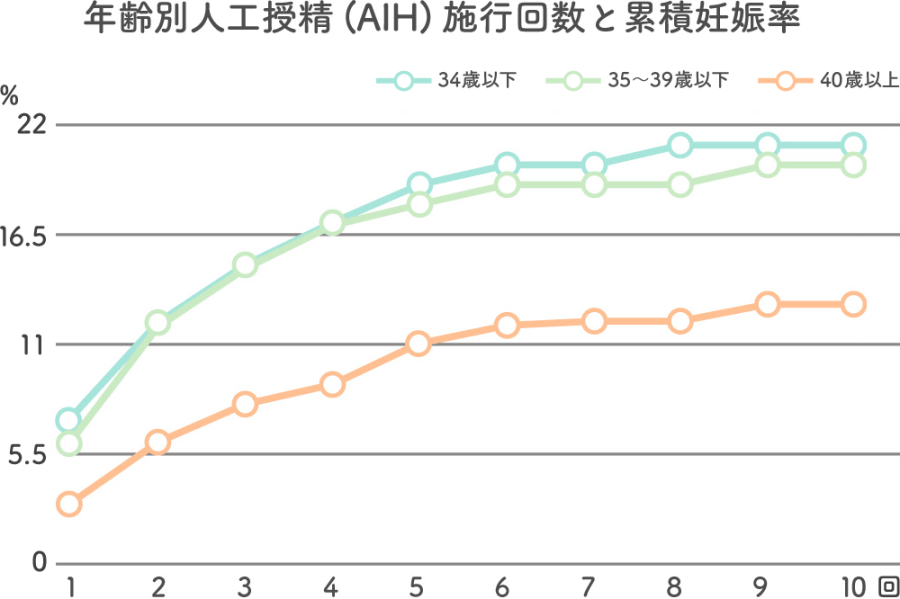 いずれの方法でも、年齢とともに妊娠率は下がります。少しでも早く不妊治療を始めることが、妊娠への近道には変わりありません。