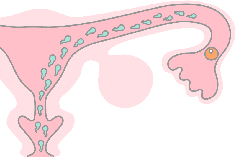 性交渉により男性が射精すると、精子は子宮頸管から子宮、卵管へと進みます。通常、1回の射精で1億個以上の精子が放出されますが、その中でも卵管までたどり着く精子はごくわずかです。精子が少なかったり、形状が良くなかったりすると、精子の前に進む力が足りず、卵管内に進むことができません。