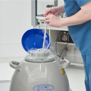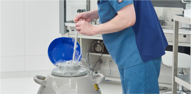 採卵した卵子を-196℃の液体窒素で急速冷凍します。保存期間中は専用タンクに施錠して保管します。