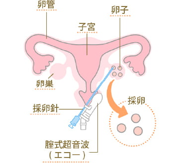 卵巣から卵子を採取します。